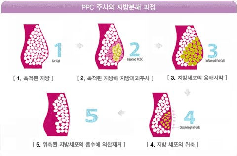 포스파디딜콜린 (PPC-phosphadidyl choline)이라는 성분의 지방용해 주사로 국소적 지방분해 효과가 있어, 체형관리에 적합한 요법입니다.